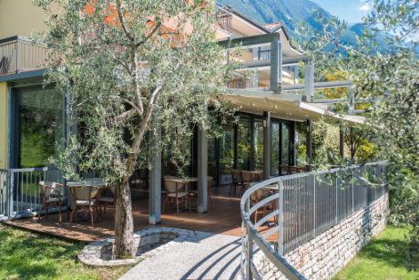 Eingetauchtin ein Umfeld von unvergleichlichem Zauber, inmitten  einem Olivenpark , Zypressen und Oleander, besitzt das Gardasee Hoteleine bevorzugte Lage: im Ortskern Malcesine,"Perle des Gardasees', liegt nur wenige Schritte vonder Burg und Sehenswürdigkeiten.