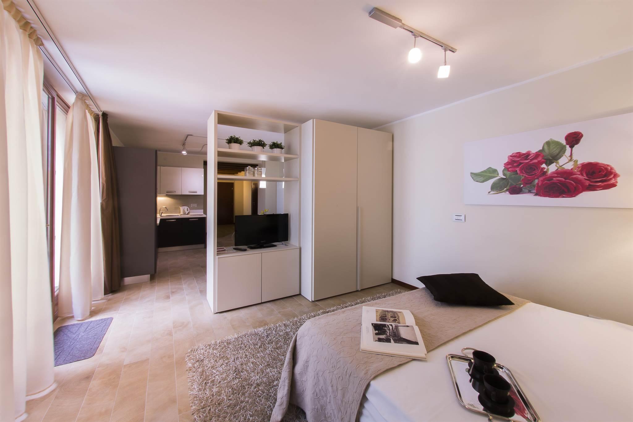 It is a 40 sqm studio on the first floor of the structure facing the anthitheatre Arena , furnished with design furniture and equipped with every comfort. The kitchen is modern and fully equipped with coffee machine Nespresso, Washing machine, dishwasher, safe, satellite TV and overlooks a lovely terrace where you can have your dinner outside or just relax. It also has a living room adjacent to the apartment with a view directly on the Arena.