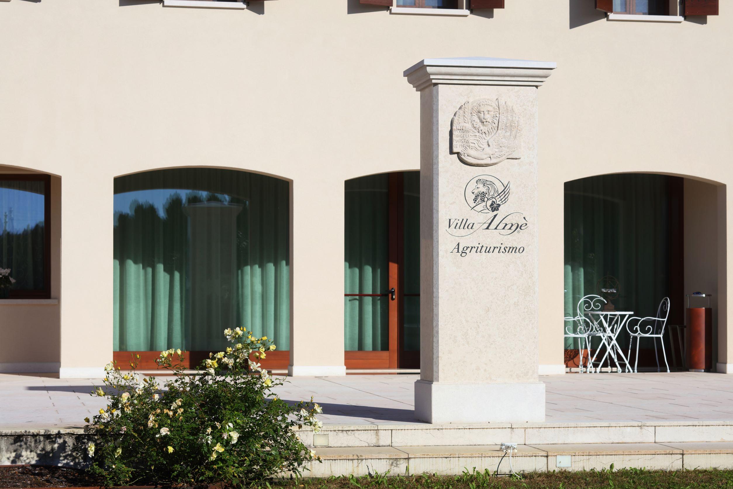 L’Agriturismo Villa Almè è composto da due edifici distinti, il più grande è caratterizzato dall’ampio porticato e dal caldo colore rosso mattone delle pareti.Da un lato l’elegante salotto con camino, dall’altro gli imponenti spazi della cantina con i suggestivi locali per la lavorazione, la maturazione e l’invecchiamento del vino.