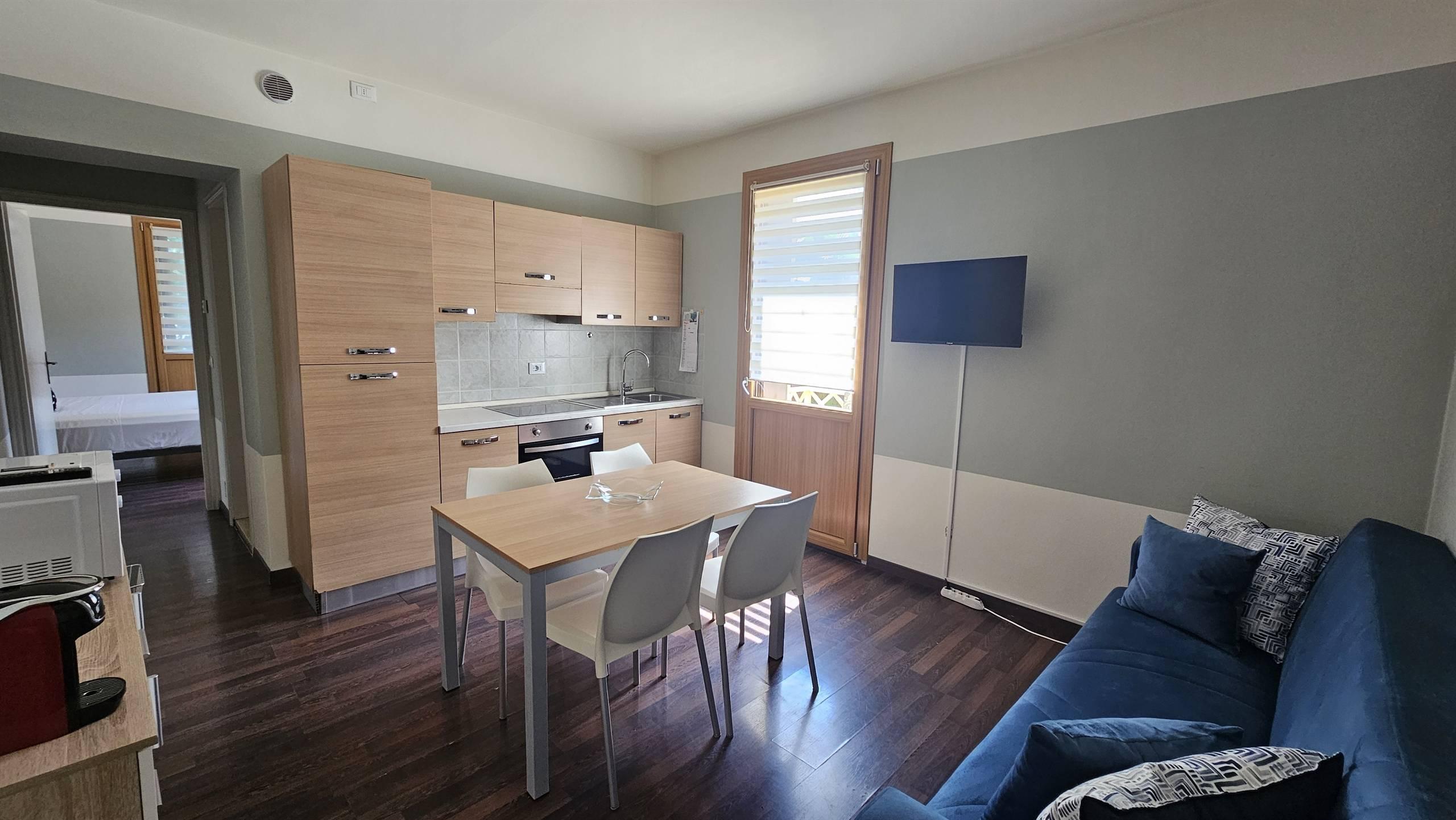 Grazioso appartamento composto da soggiorno con divano letto, cucina a vista, camera matrimoniale, un bagno completo e terrazzo privato di 10mq.
