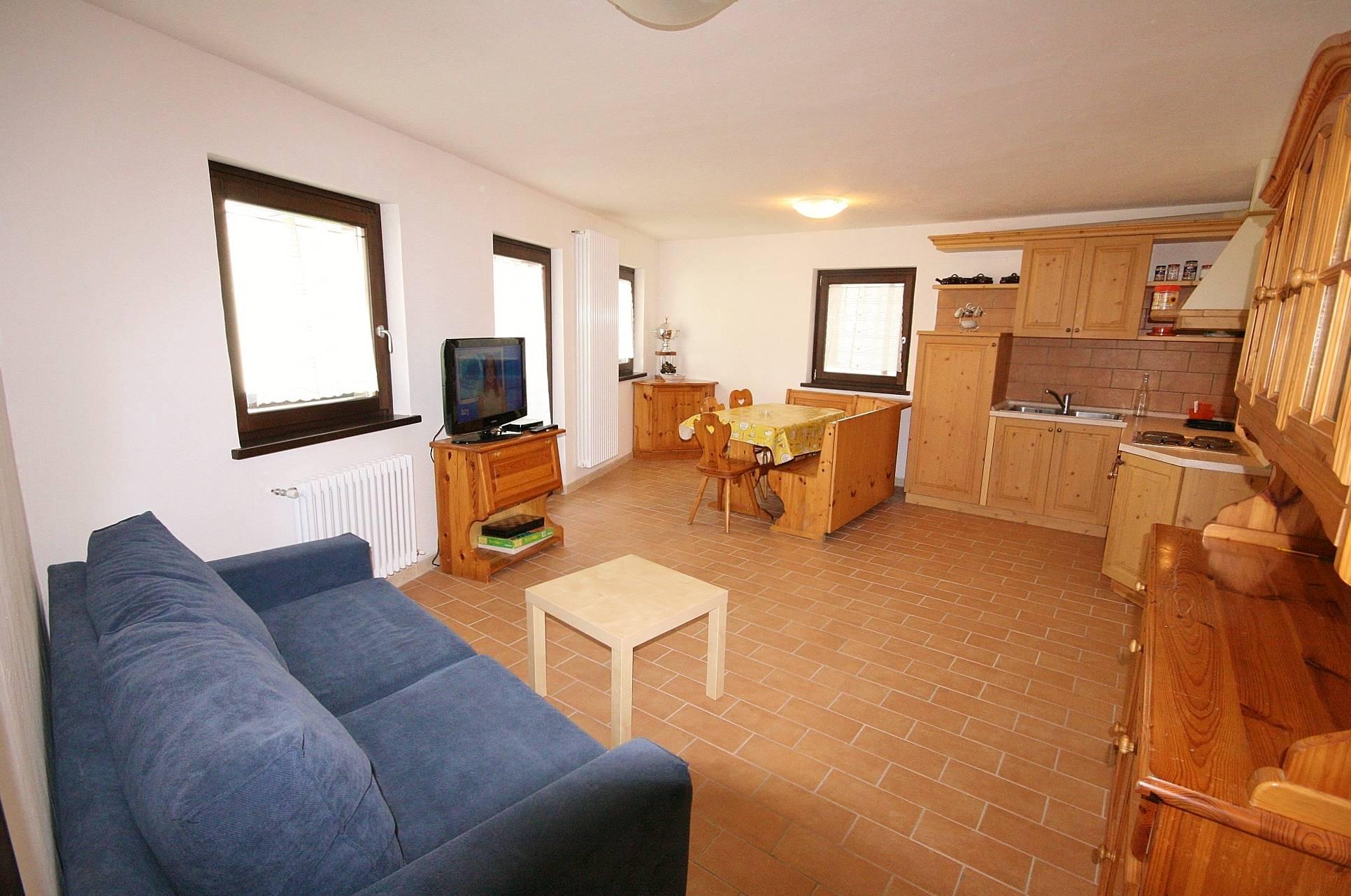 L'appartamento si sviluppa al primo piano della palazzina. Appena entrati troviamo uno spazioso soggiorno con angolo cottura e zona pranzo, ci sono poi una camera matrimoniale dove ci sono anche un letto a castello ed una cabina armadio, una seconda camera matrimoniale ed il bagno con doccia.