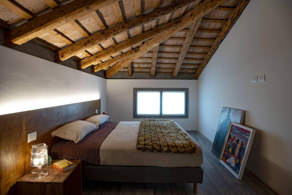 Elegante mansarda ristrutturata nel 2023 mantenendo inalterato il tipico soffitto in legno e pietra e i muri in sassi del Piave, materiali del nostro territorio che venivano utilizzati per costruire le case nei primi anni del '900. Il fabbricato è stato il primo ad essere costruito in Via Belvedere che come dice il nome gode di un magnifico panorama che va dal Montello alle colline del Prosecco, con in mezzo le "Grave di Ciano sul fiume Piave" un territorio ricco di biodiversità e ideale per bici e passegiate. L'appartamento è dotato di tutti i moderni sistemi di confort come aria condizionata e riscaldamento a pavimento, ha una grandezza di 90 mq ideale per una vacanza romantica, ma adattabile anche a eventuali famiglie grazie al divano letto matrimoniale nell'ampio salotto. Al piano terra un garage dedicato alle biciclette e un ottimo ristorante il "POVERO RE'". Posto auto esterno a disposizione nel retro della struttura.